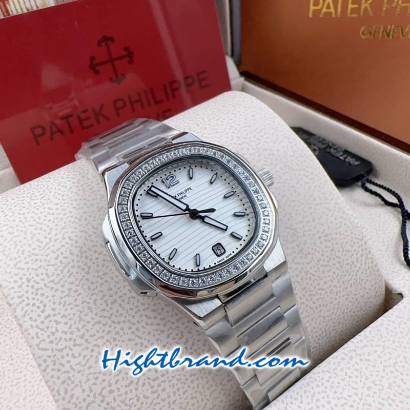 [Patek Replica Ladies Diamond White Dial 32mm Watch]
