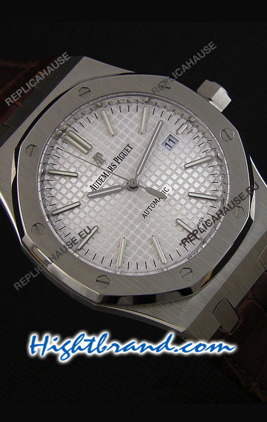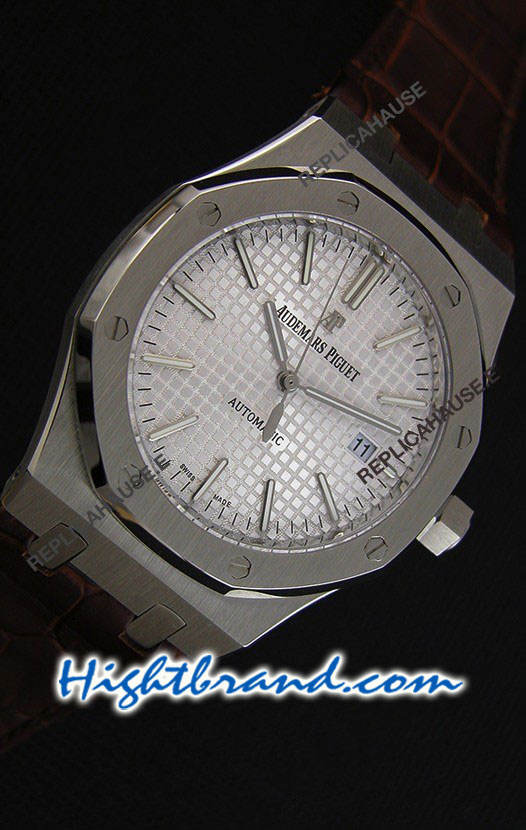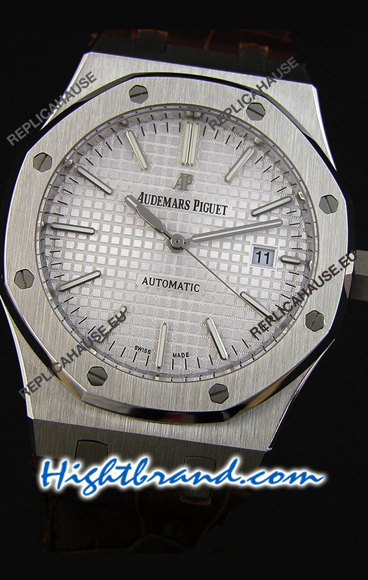 Audemars Piguet Royal Oak Silver Dial Leather Strap Swiss Watch 24