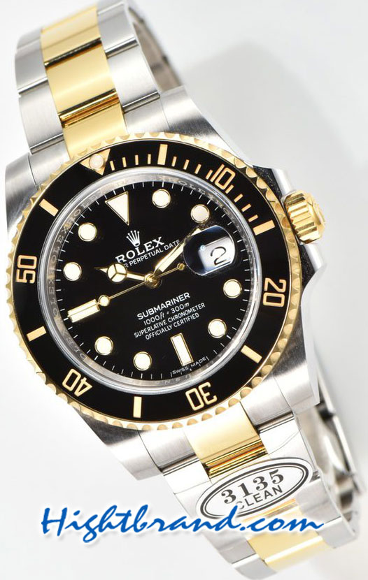 [Rolex Replica Submariner Two Tone Black Swiss Clean Watch]