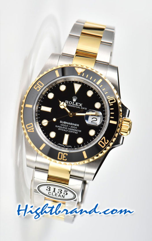 Rolex Submariner Two Tone Gold 3135 Black Dial Swiss Clean Replica Watch 5